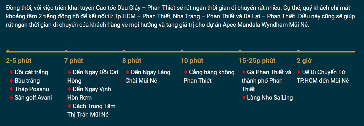 ♦ Apec Mandala dễ dàng kết nối với các địa điểm quan trọng: như sân bay, ga tàu và trung tâm thành phố Phan Thiết…