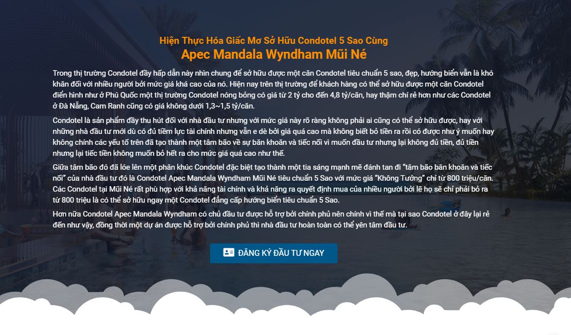 Tin Liên Quan >> 10 Lý do thuyết phục Quý khách đầu tư Dự án Apec Mandala Wyndham Mũi Né