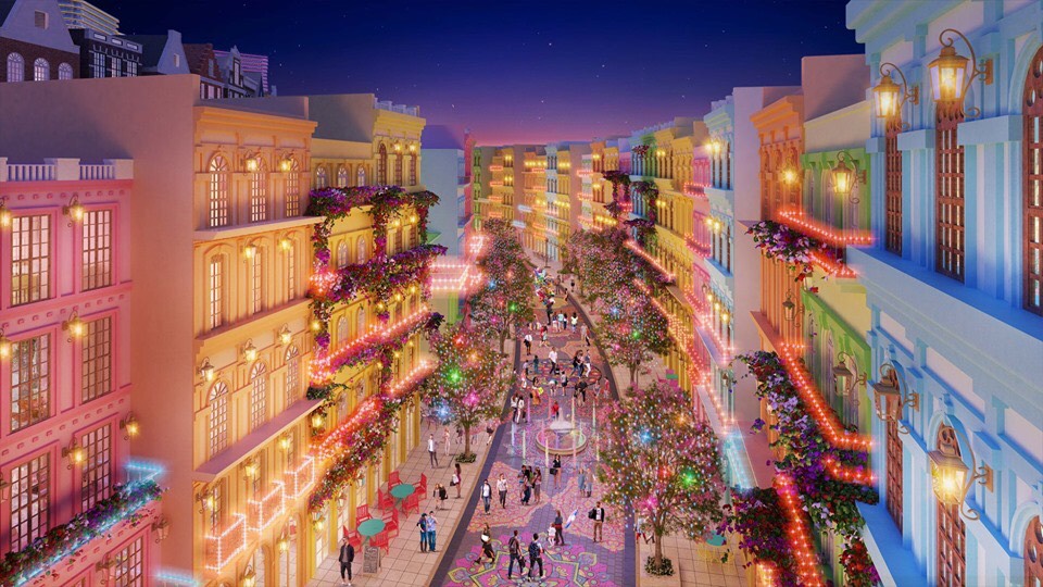 – Khu vực quảng trường sự kiện – Khu C: Khu nhà hát ngoài trời và khu nhạc nước trong tương lai chính là nơi tổ chức sự kiện với sức chứa lên đến 1000 người. Tuyến phố còn liên kết với các công viên, các công trình cảnh quan đẹp, khu café, sân chơi cờ khổng lồ, đường chạy bộ và xe đạp,… các hoạt động biểu diễn của nghệ sĩ đường phố ở đây sẽ tạo nên một nét văn hóa đặc trưng.